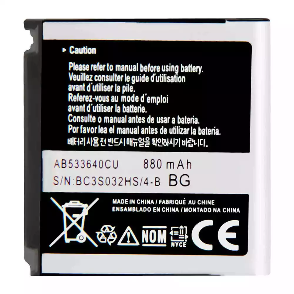 Accu AB533640CU voor Samsung S3600/S3600 Metro/C3110/G400/G500/F469/G600/G608/J638/F330/F338/S3600i/AB533640CC/AB533640CK/AB533640CE