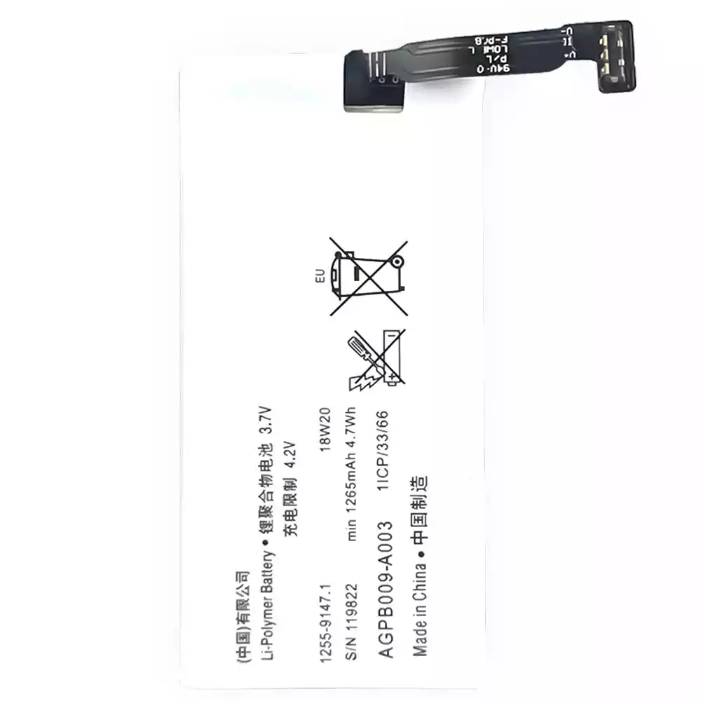 Capaciteit: 1265mAh (4.7Wh)
