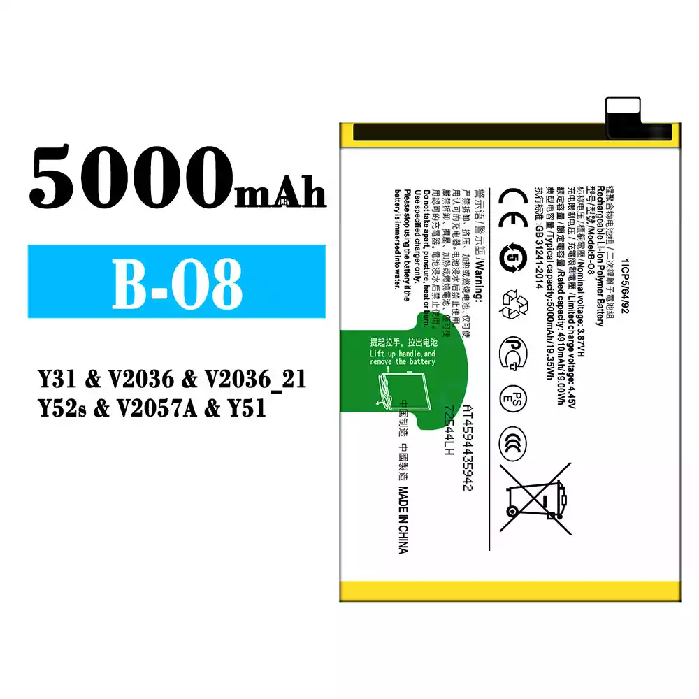Accu B-O8 voor VIVO Y31/Y52s/Y51/V2036/V2036_21/V2057A