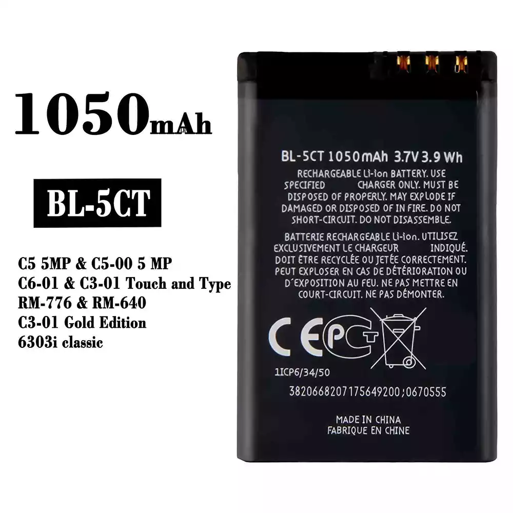 Accu BL-5CT voor Nokia C5 5MP / C5-00 5 MP / C6-01 / C3-01 Touch and Type / RM-776 / RM-640 /C3-01 Gold Edition / 6303i classic