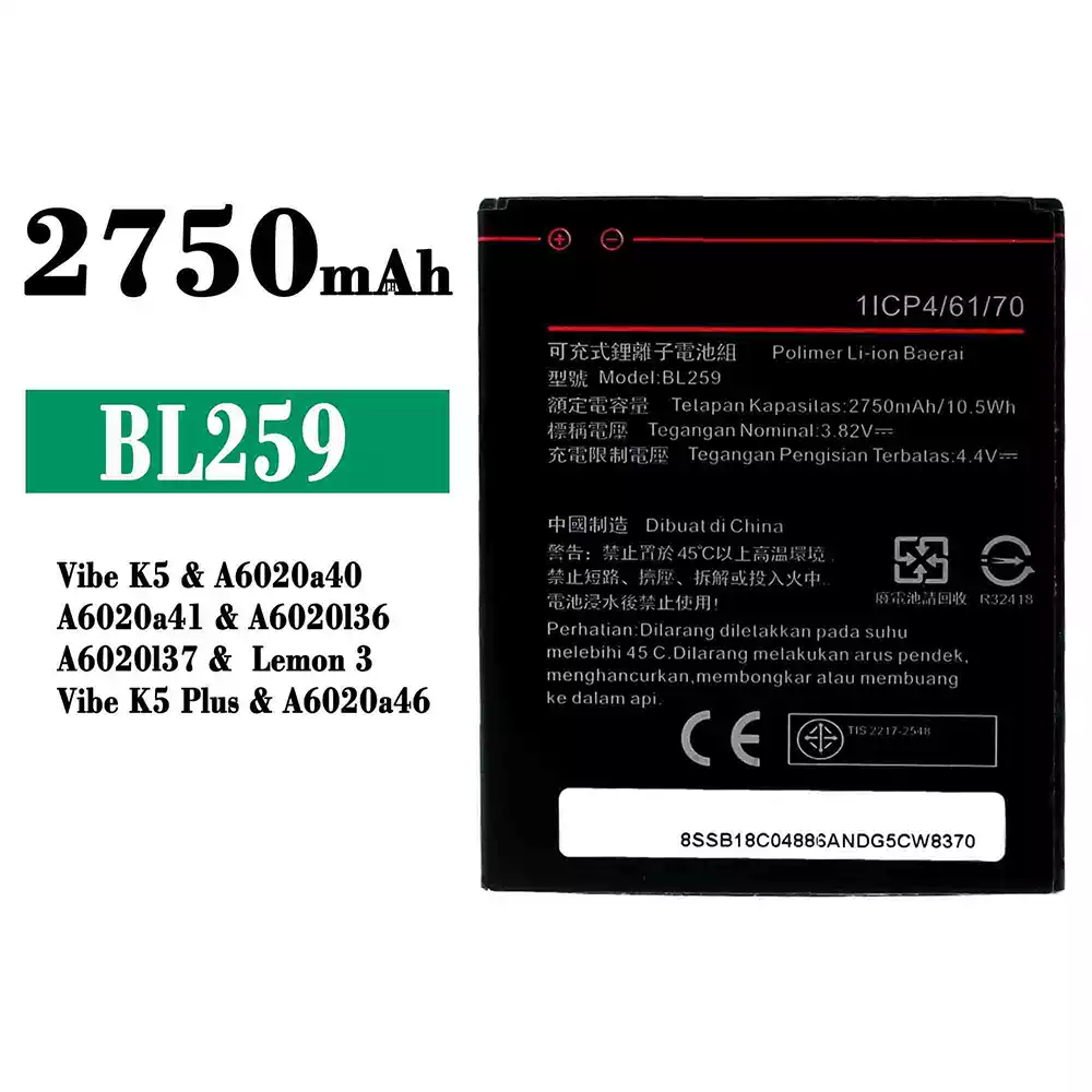 Accu BL259 voor Lenovo Vibe K5 / A6020a40 / A6020a41 / A6020136 / A6020137 / Lemon 3 / Vibe K5 Plus / A6020a46