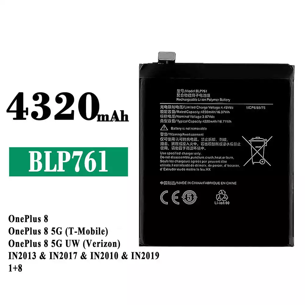 Accu BLP761 voor OPPO OnePlus 8 / OnePlus 8 5G (T-Mobile) / OnePlus 8 5G UW (Verizon) / IN2013 / IN2017 / IN2010 / IN2019 1+8