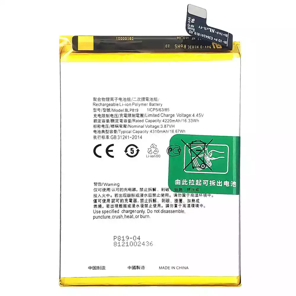 Accu BLP819 voor OPPO Reno 5 4G /Reno 6 4G /F19 Pro Plus /Reno 5 Lite /Reno 5Z