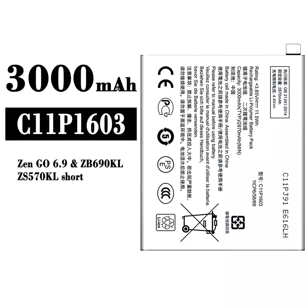 Accu C11P1603 voor Asus Zen GO 6.9 / ZB690KL / ZS570KL Short