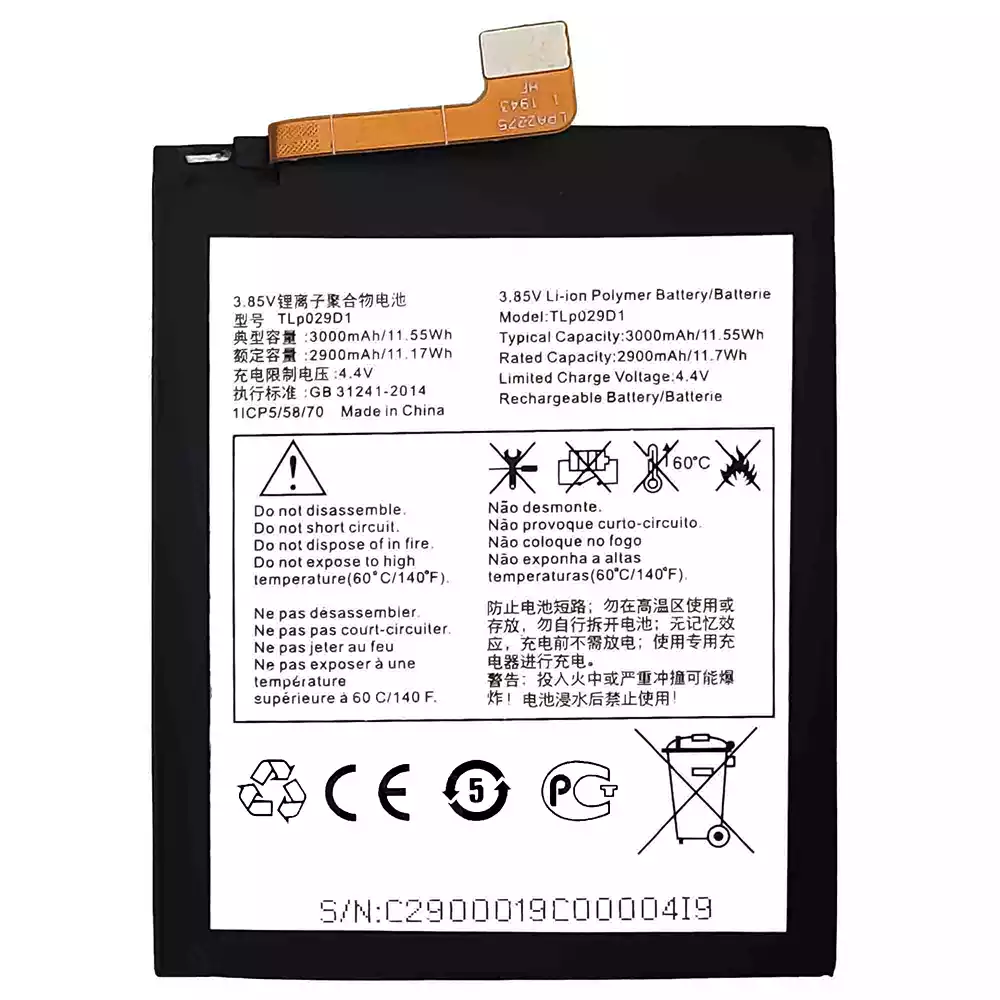 Accu TLP029D1 voor Alcatel 3 2018 / 0T-5052 / 5052D / 5052A / 5052Y / 5 / 0T-5086 / 5086D /5086Y / 5086A / 3L 2018 / OT-5034 / 3x 2018 / 0T-5058 / 50581 / 5058T / 5058Y / 5058A / 5058J